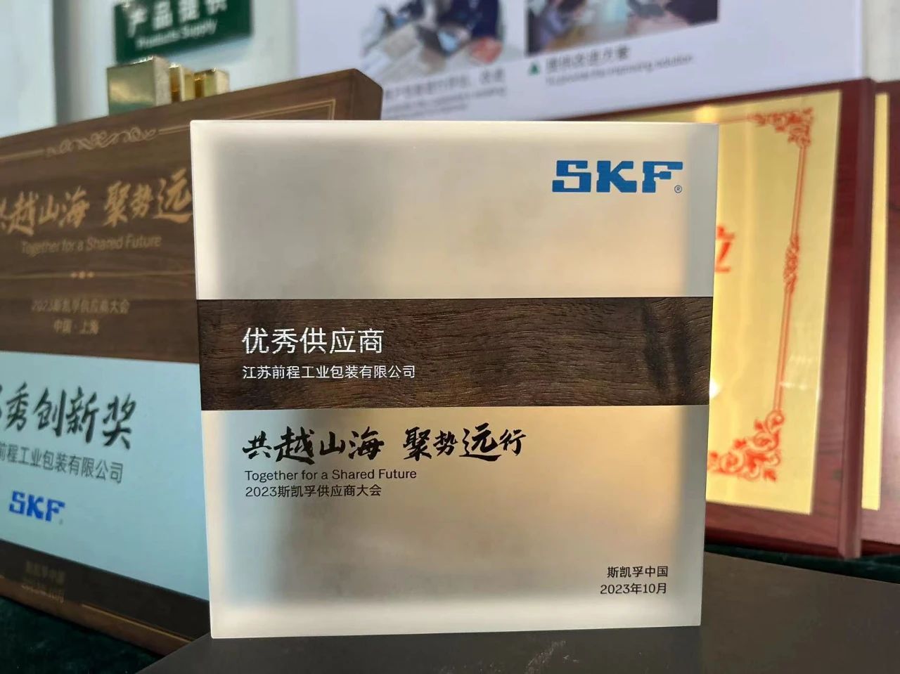 前程為SKF公司提供產品和服務可以追溯到2006年,為了滿足SKF對包裝產品的高要求、嚴標準,前程公司憑借多年的專業技術積累、成熟的供應及生產管理能力,成功實現量產準時交付,受到了客戶的認可和贊譽,并與SKF建立了長期穩定的合作關系。前程公司將以此次獲獎作為新起點,與SKF攜手共進,堅持穩定高質量的品質交付,持續發揮企業應有的價值。