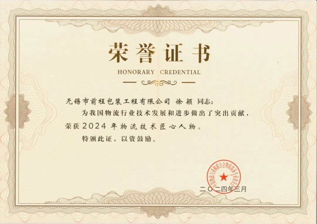 近年來,徐穎總經(jīng)理帶領(lǐng)技術(shù)研發(fā)團(tuán)隊(duì)組建了江蘇省綠色智能包裝工程技術(shù)研究中心,并成功通過省級工程技術(shù)研究中心認(rèn)定,對我國綠色智能包裝技術(shù)及企業(yè)創(chuàng)新發(fā)展注入新動力。通過開發(fā)新的代木材料,幫助客戶努力降低包裝成本,為客戶創(chuàng)造價(jià)值,為減少林業(yè)資源消耗及其他包裝原材料行業(yè)的可持續(xù)發(fā)展作出了積極的努力;通過推進(jìn)循環(huán)包裝及減量化,為新能源、成套裝備、高端醫(yī)療器械等新興產(chǎn)業(yè)助力。公司獲得“創(chuàng)新示范領(lǐng)軍企業(yè)”、江蘇省“專精特新”企業(yè)等多項(xiàng)榮譽(yù)稱號,也收獲了眾多客戶的認(rèn)可和信任。此次,徐穎總經(jīng)理榮獲”物流技術(shù)匠心獎”亦是行業(yè)對前程公司不斷創(chuàng)新、穩(wěn)健發(fā)展的高度肯定。